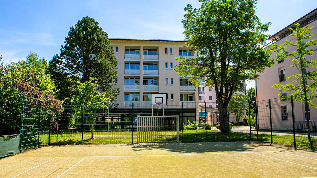 Zum Haus gehören ein Volleyballplatz, Basketballkörbe, ein Fitness-Studio sowie verschiedene Freizeiträume, die Raum für Sport, Begegnung und Austausch mit anderen internationalen Teilnehmern bieten. In der hauseigenen Mensa werden von Montag bis Freitag Frühstück und Abendessen angeboten. Dank der guten Anbindung an die öffentlichen Verkehrsmittel erreichen Sie die Münchner Innenstadt schnell und bequem.